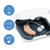 Disfrute de una capacidad auditiva mejorada con el amplificador de sonido HA 50. Ya sea que estés viendo un programa de televisión, en una reunión o teniendo una conversación con amigos, con el amplificador de sonido Beurer, seguramente no te perderás ni una palabra. El amplificador auditivo Beurer HA 50 se adapta cómodamente detrás de la oreja y apenas es visible, el dispositivo es ligero y se mezcla con el oído y el cabello, lo que hace difícil notar que lo estás usando.
