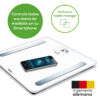 Esta balanza de diagnóstico con Bluetooth BF600 dispone de una pantalla LCD negra con iluminación blanca que muestra los valores de medición siempre a la vista. Gracias a la aplicación Health Manager podrás transferir los datos automáticamente a tu dispositivo móvil vía Bluetooth. Podrás controlar tu peso, grasa corporal, agua corporal, masa muscular, masa ósea, información calórica y el IMC y seguir su evolución fácilmente en tu Smartphone. Gracias a los sensores táctiles, puedes configurar tus datos directamente en la báscula. Ésta se enciende automáticamente y comienza a realizar la medición cuando el usuario se coloca sobre ella.