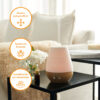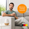 Este difusor de aroma de bambú y porcelana LA40, combina la aromaterapia, que tiene como objetivo mejorar su bienestar psicológico, con la cromoterapia, la cual ayuda a sanar ciertas enfermedades a través de los colores. También, tiene una tecnología de ultrasonidos a través de unas vibraciones de alta frecuencia que permiten que salgan pequeñas gotas aromatizantes. Es silencioso y su consumo bajo (12 W) va acompañado de un apagado automático cuando la botella se termina. Gracias a la luz LED que cambia de color podrás disfrutar de 6 colores relajantes y el aroma de aceites aromáticos solubles en agua. Tu cuerpo y mente disfrutará de relajación y bienestar con este aparato silencioso que podrás colocar en cualquier habitación de hasta 20 m2.