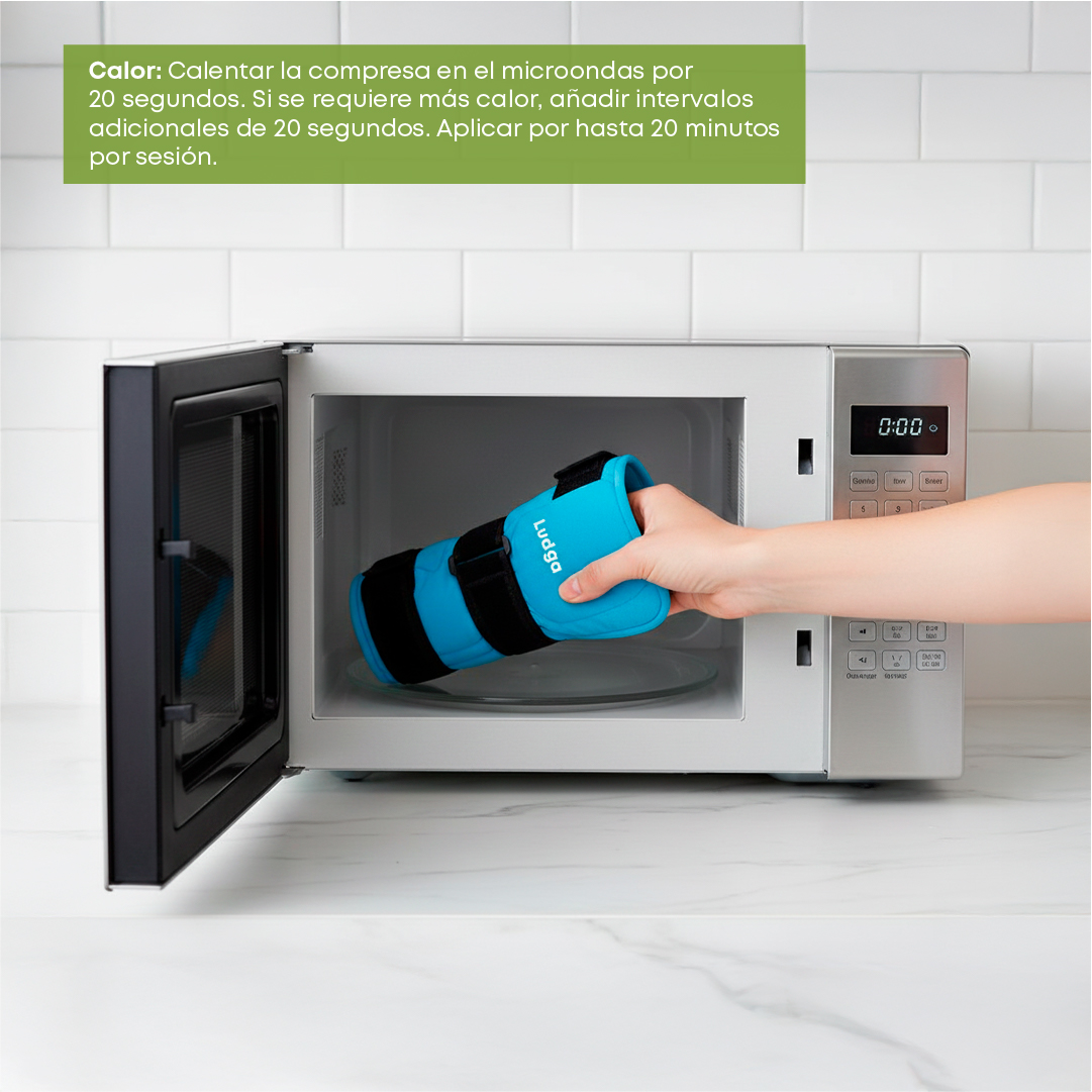 - Coloque la compresa de gel en el microondas durante 20 segundos.